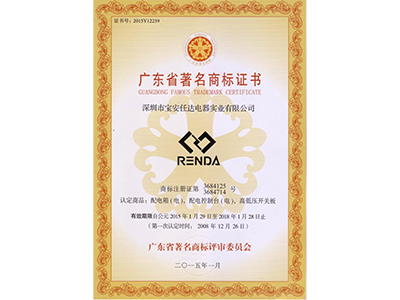 深圳市寶安任達(dá)電器實(shí)業(yè)有限公司“renda”標(biāo)志榮獲“中國(guó)馳名商標(biāo)”。