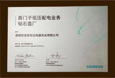 榮獲深圳市首家“西門子鉆石盤廠”榮譽(yù)稱號(hào)。開平任達(dá)電器取得“ISO14001:2015環(huán)境管理體系證書”