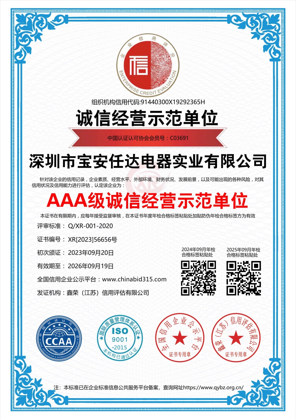 AAA級(jí)誠(chéng)信經(jīng)營(yíng)示范單位