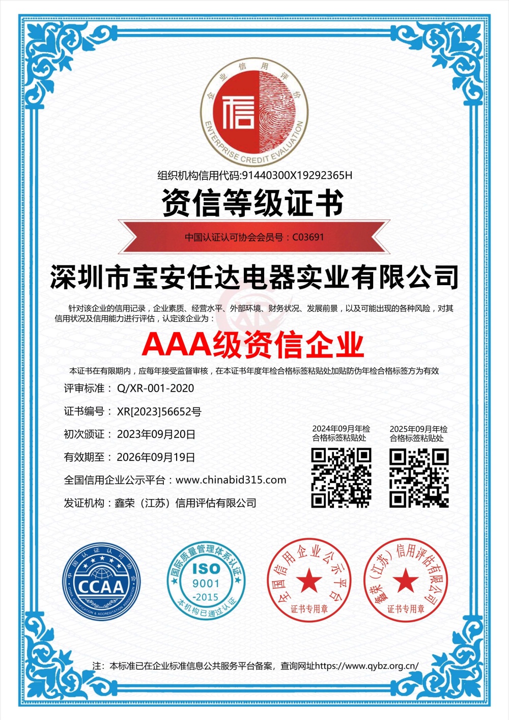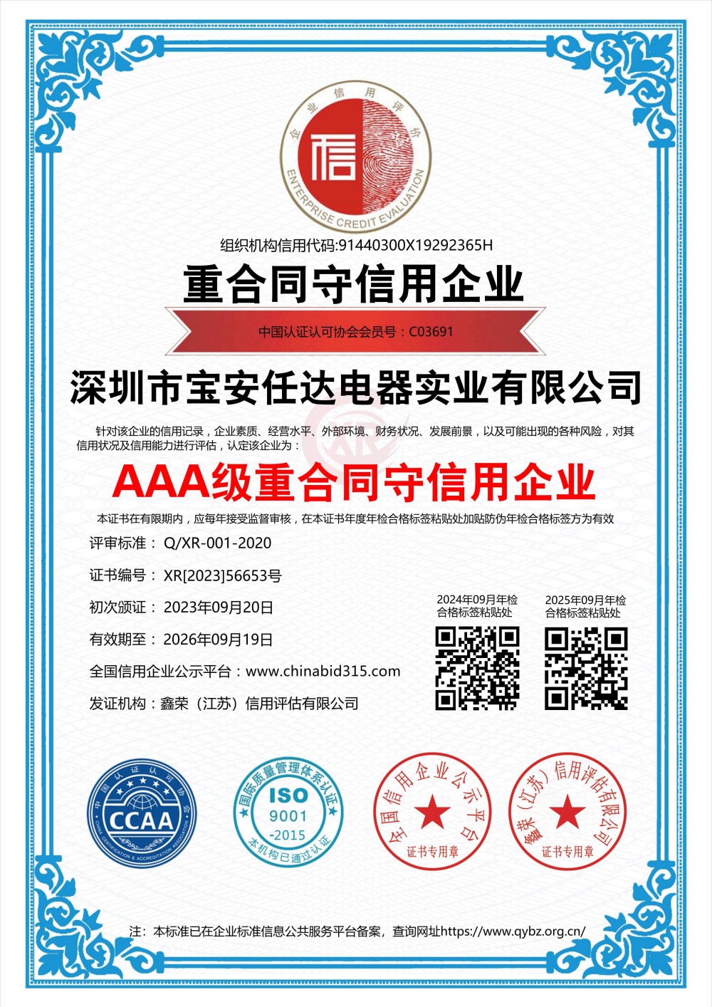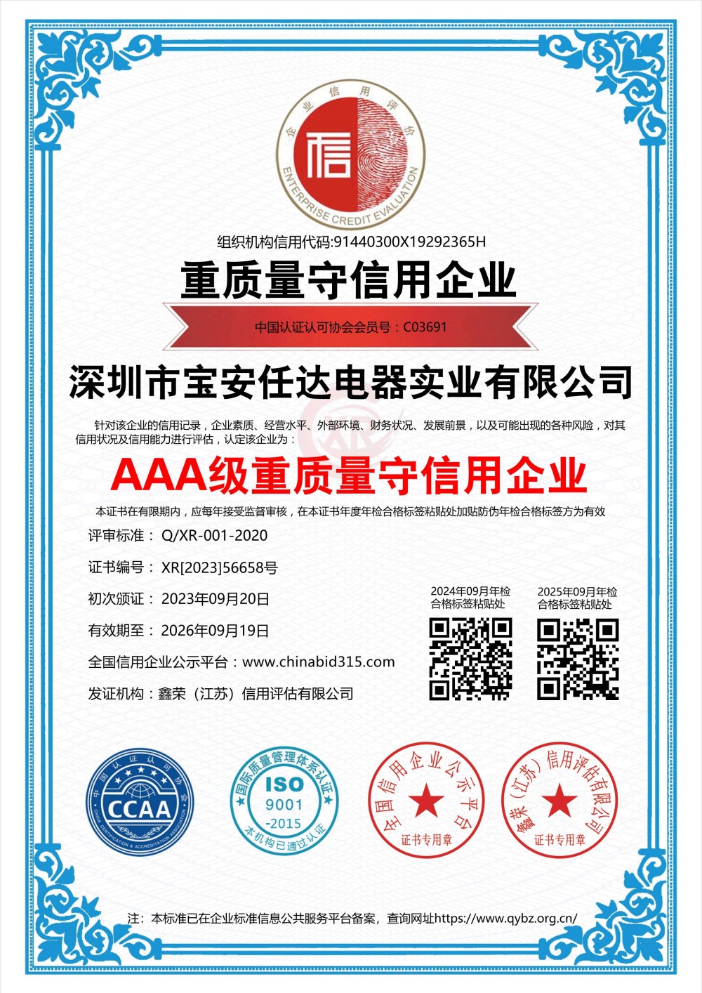 AAA級(jí)重質(zhì)量守信用企業(yè)