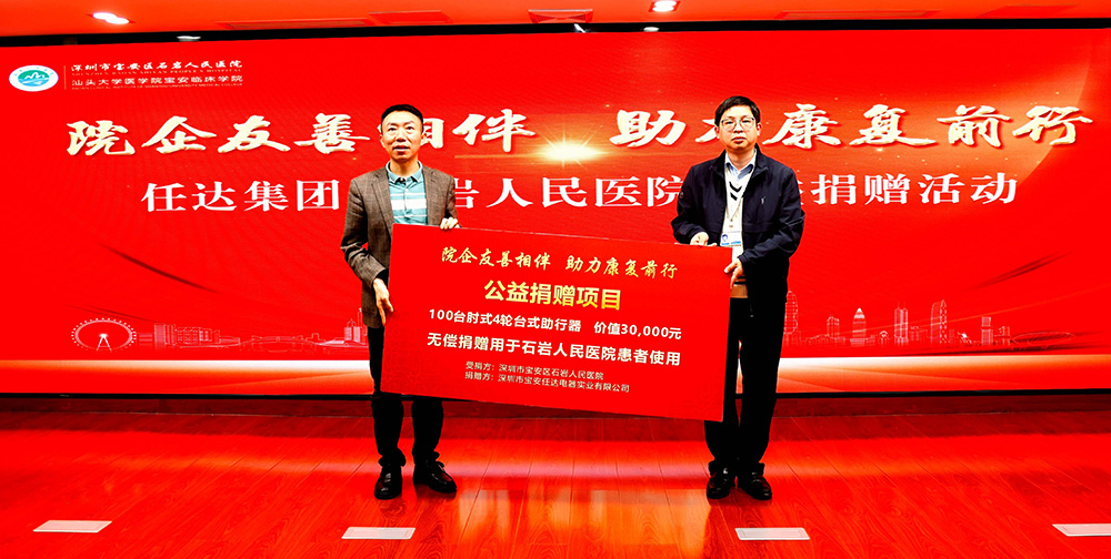 為踐行企業(yè)社會責(zé)任,推動區(qū)域醫(yī)療事業(yè)發(fā)展,2025年03月20日,任達(dá)集團(tuán)攜手深圳市寶安區(qū)石巖人民醫(yī)院共同舉辦"康復(fù)醫(yī)療公益捐贈儀式"。本次活動以"院企友善相伴,助力康復(fù)前行"為核心,通過價值30000元100臺肘式4輪臺式助行器捐贈,為石巖街道醫(yī)療患者康復(fù)治療提供硬件支持,彰顯新時代院企合作的公益力量。
