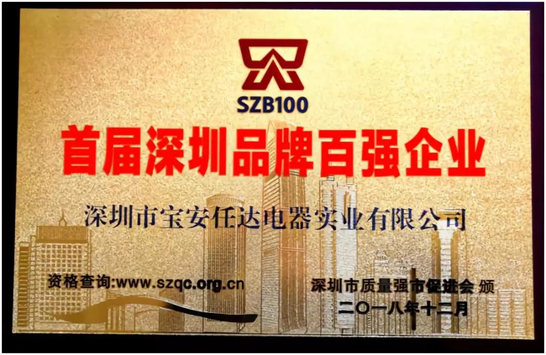 深圳市寶安任達(dá)電器實(shí)業(yè)有限公司榮登“首屆深圳品牌百強(qiáng)企業(yè)”榜單